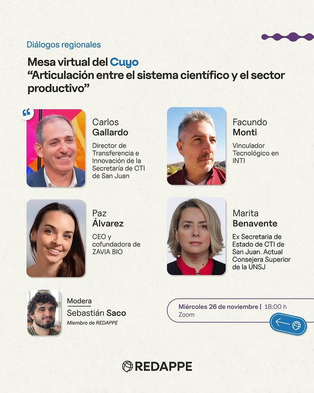 Mesa Virtual del Cuyo: Articulación entre el sistema científico y el sector productivo Fecha 26 Nov 2025 ¡Caducado! Hora 6:00 pm Compartir este evento